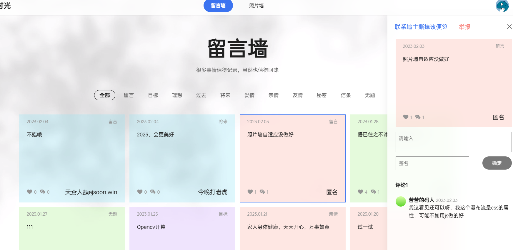 留言墙就像贴纸一样,但每个留言又可以被评论,有有点像论坛的效果。