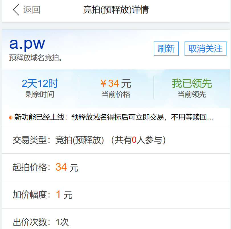 价格不算高,单字符,并且是a ,品相算是很好的了,.pw国内也可以备案。