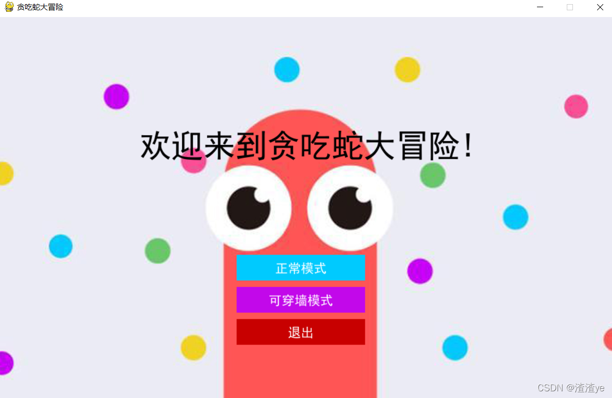 3. 定义初始化界面,在该界面中设置文本为“正常模式”、“可穿墙模式”和“退出”的三个按钮供玩家选择;