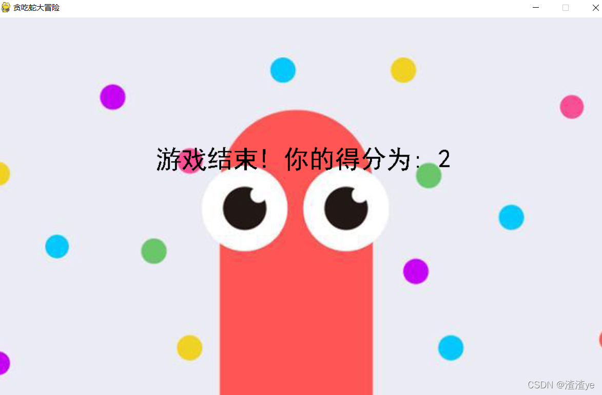 6. 定义游戏结束窗口,包括窗口显示和最后得分显示的设置。