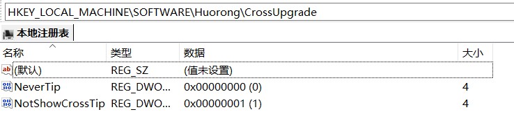 “HKEY_LOCAL_MACHINE\SOFTWARE\Huorong\CrossUpgrade”